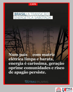 O Brasil precisa aproveitar a janela de oportunidades da transição energética para reorientar sua economia, fortalecer sua soberania e melhorar a vida da população. Caso contrário, continuaremos reféns de um modelo excludente e dependente.