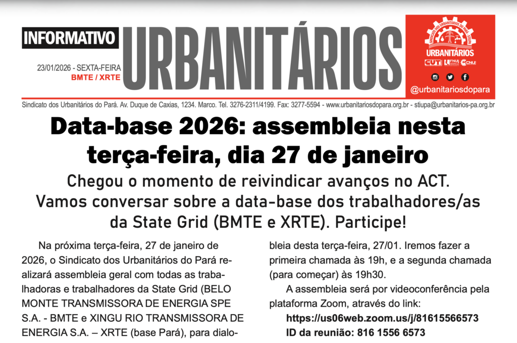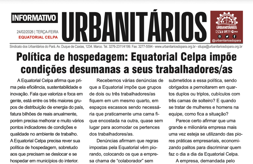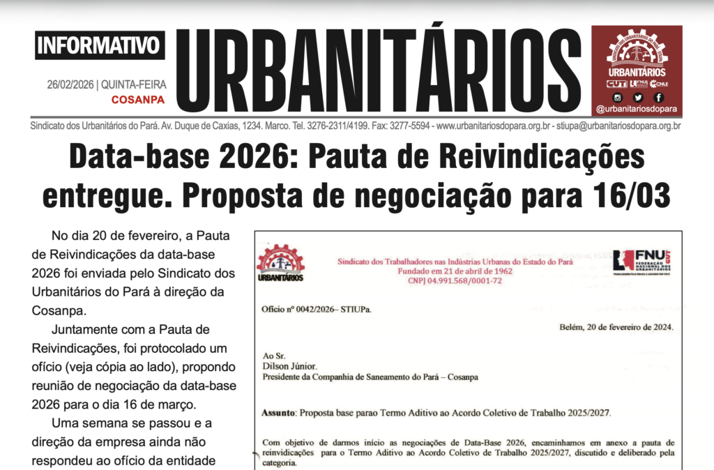 A atividade contou com a presença dos trabalhadores e trabalhadoras e da direção do Sindicato dos Urbanitários do Pará, representada por seu …